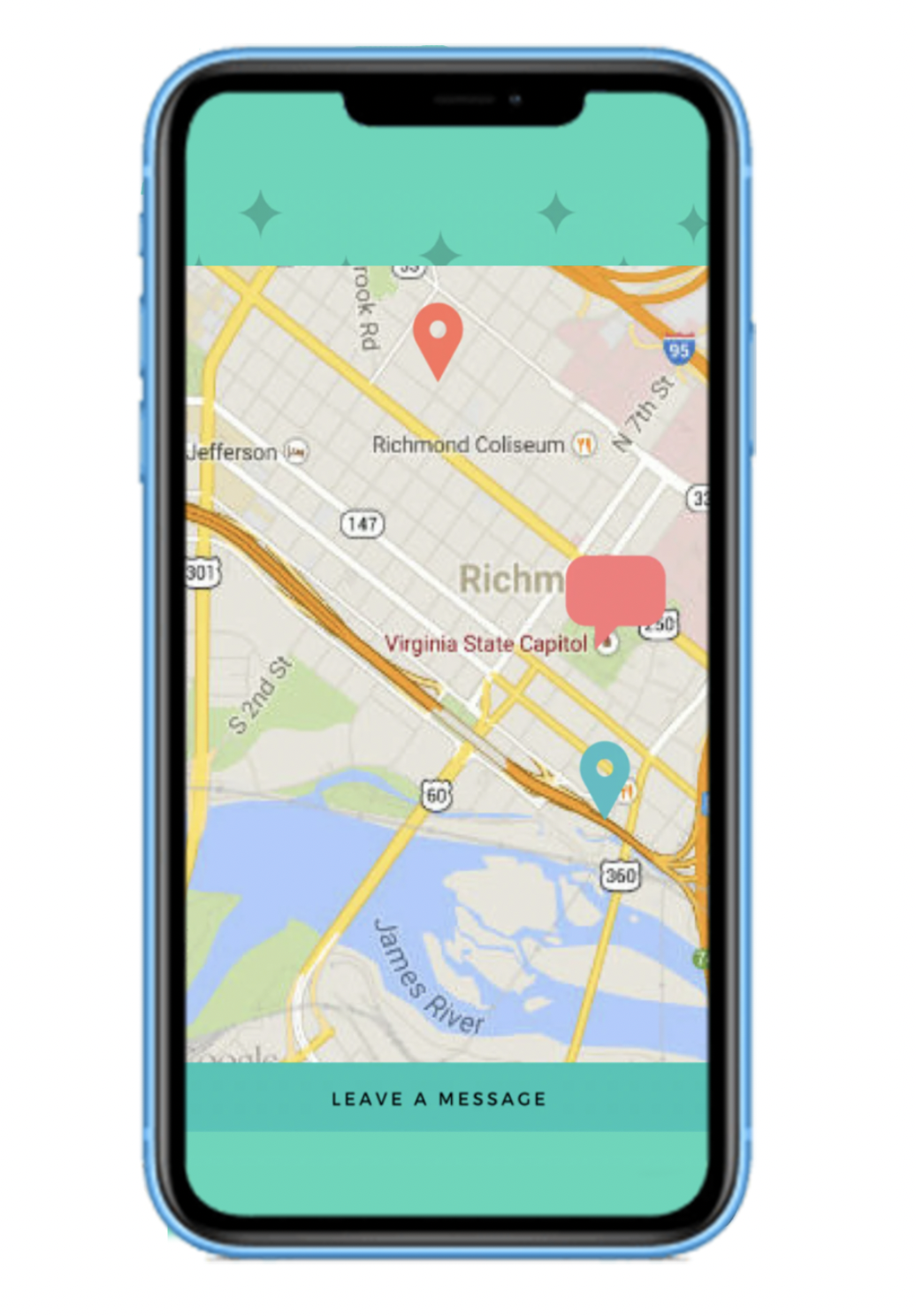 The idea of the app is to connect users' location, messages and the location (provided by the map services).